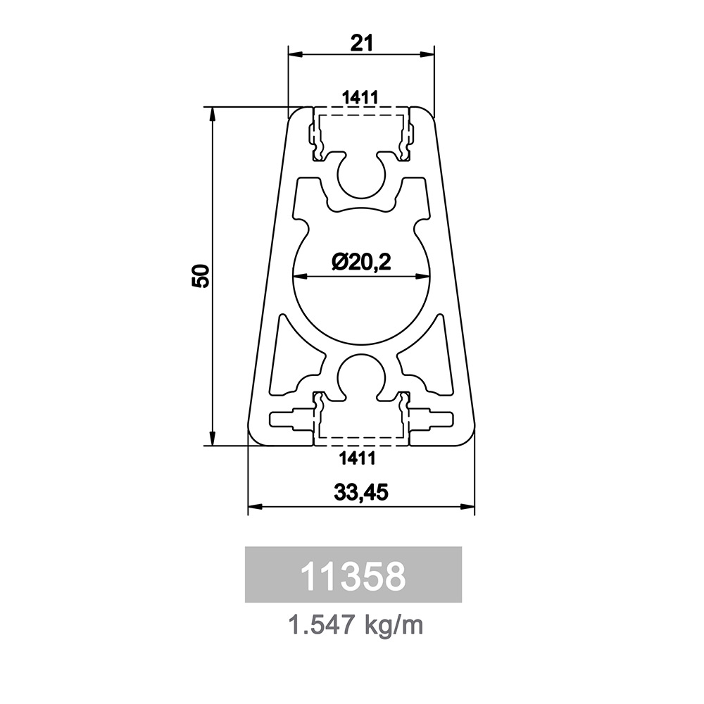 1.547 kg/m LM 55 Flat Railing Profile